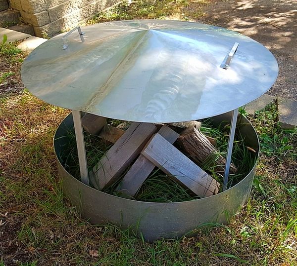 Fire pit heat deflector in stainless steel.